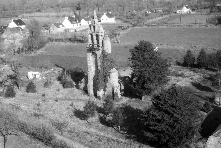 Construction 2e moitié 15e siècle ; abside en 1628 par Le Gac de Lesmaes ; de 1633 à 1644, tour et 3 chapelles par Louis Le Goaziou, Le Gonidec et Jean Calvez ; transept 18e siècle par Pierre Claude Duchemin, en ruines depuis le milieu du 19e siècle.