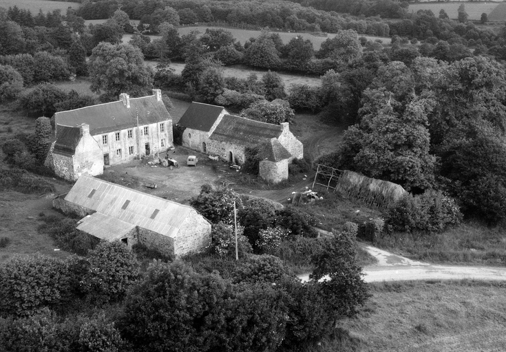 Communs est, chapelle et pigeonnier peut-être 17e siècle ; logis et communs ouest du 19e siècle.