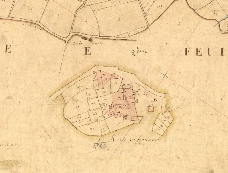 Malgré la disparition partielle de son étage en surcroît, cette ferme conserve, outre sa belle mise en œuvre en pierre de taille, son escalier dans une tourelle postérieure hors-œuvre. Sa structure associant un logis à étage avec un logis bas est un poncif de la période (17e siècle) dans toute la Bretagne ; cependant, il s'agit généralement d'un étage carré (comme à Kergavy dans la même commune datée 1644), et non d'un étage en surcroit comme ici avant les transformations. Cette disposition rappelle les salles hautes sous charpente en usage dans les logis nobles au 15e siècle.