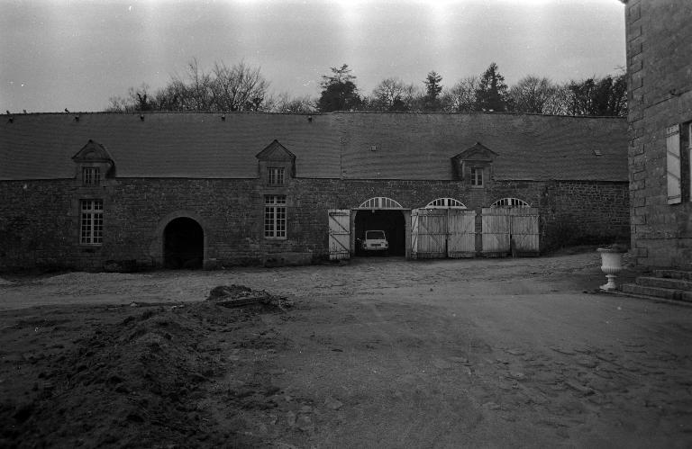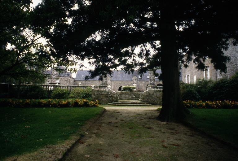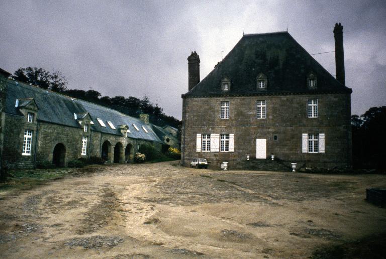 L'organisation d'ensemble obéit aux critères de l'époque avec cour et avant-cour encadrées de communs, écuries, remise à arcades ainsi que de la chapelle, érigée en deux campagnes entre 1755 et 1768. Deux pavillons carrés rappelant en réduction la masse du logis bordent l'avant-cour selon une organisation similaire à celle du Coscro en Lignol. Cependant, ici subsiste un ensemble remarquable de jardins réguliers enclos avec terrasse, escaliers, puits, orangerie.