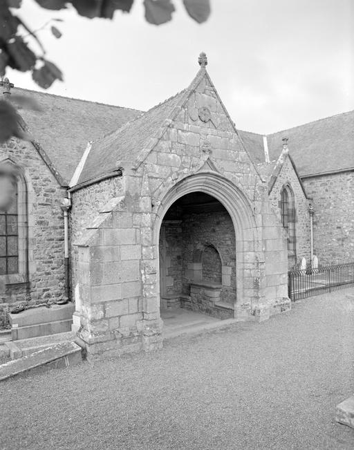 Porche sud et bras sud 2e moitié 16e siècle. Elévation ouest en 1727. Reste de l'édifice en 1890 par Théodore Maignan. Inscription : HIEROME POULLOUIN FABRIQUE 1727 .