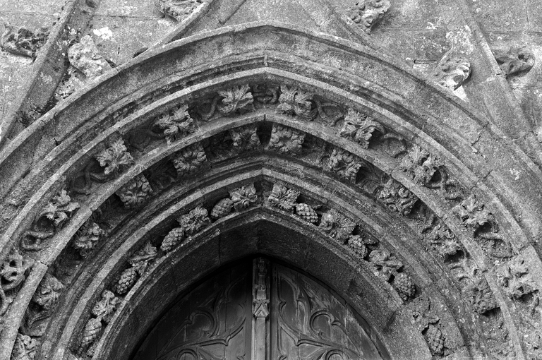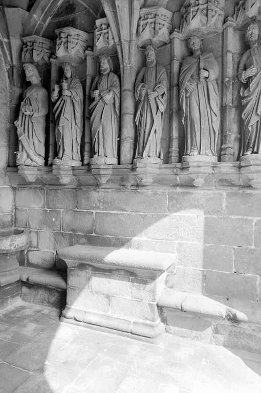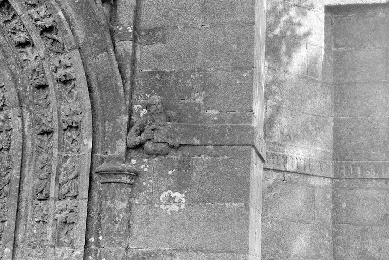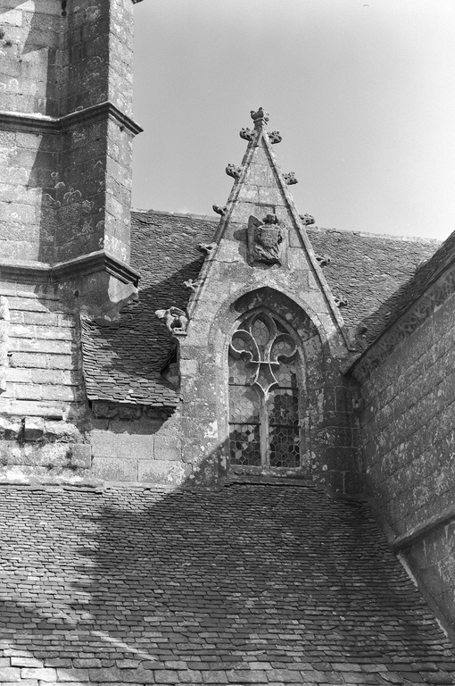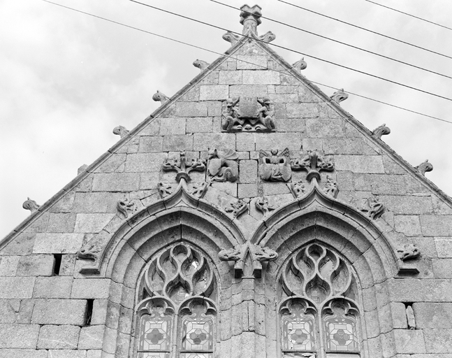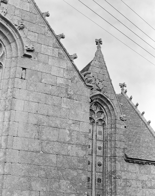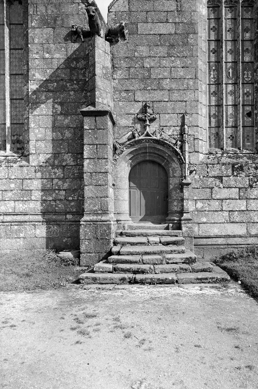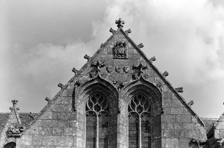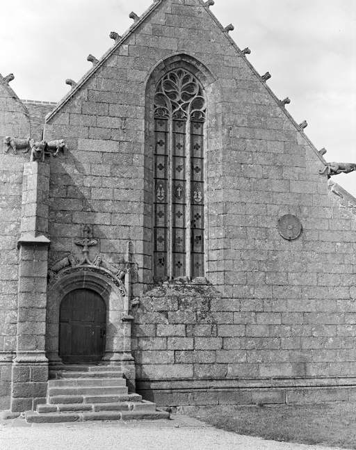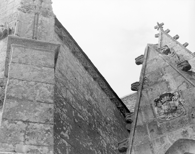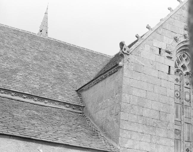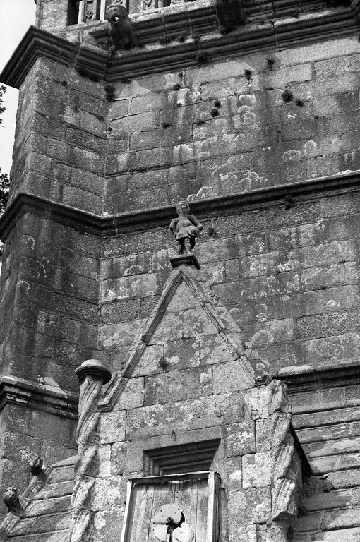Eglise construite de 1550 (partie est) à 1554 (tour) par Pierre et Guillaume Jézéquel pour Richard Paul, C. Lostec et F. Borgne ; chapelle sud porte la date 1550 ; tour porte la date 1554.