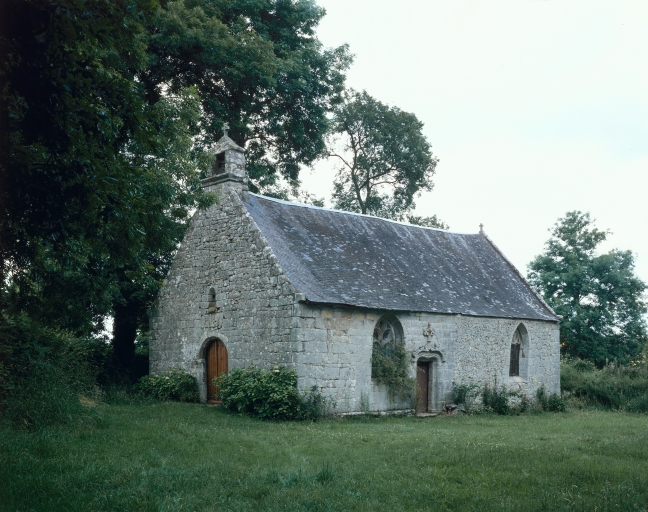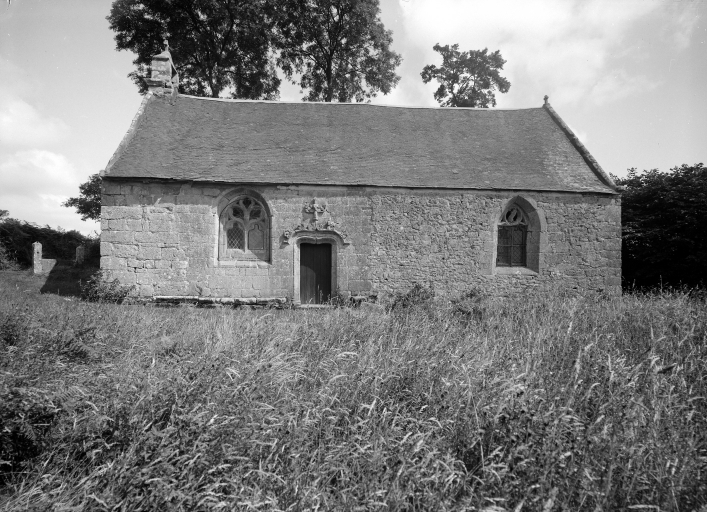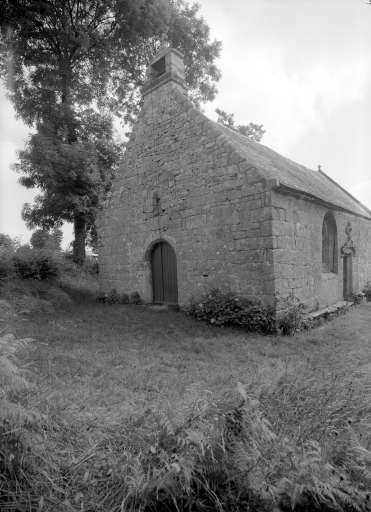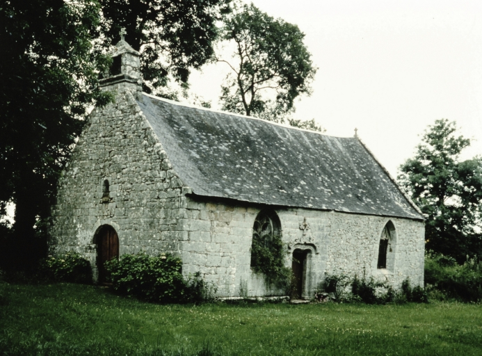 Mur sud construit fin 15e siècle. Reconstruit en partie en 1667. Reconstruction du mur ouest en 1754. Reconstruction du choeur en 1771 (inscription) . Blason d'un abbé de _Coët Mallouan sur le mur ouest. Fontaine 18e siècle (?).