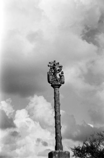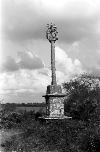 Croix construite en 1590 ; inscription : CEST CROIS FUT FAIT P DOM G BELO.. L MIL VLXXXX (1590).