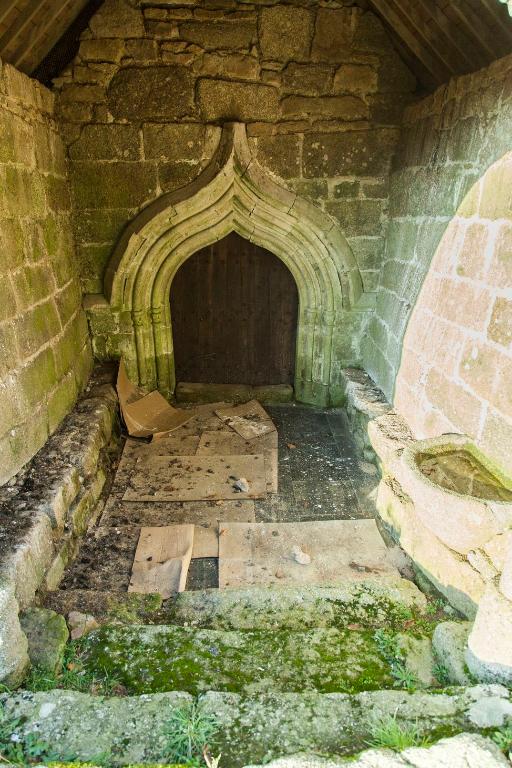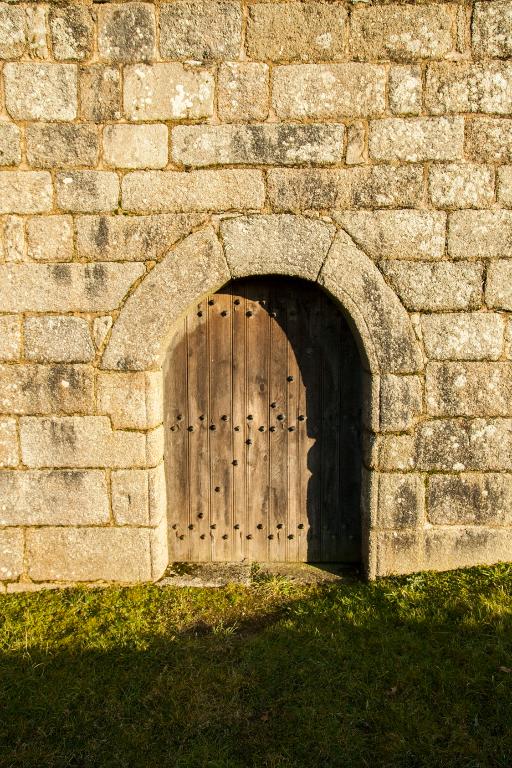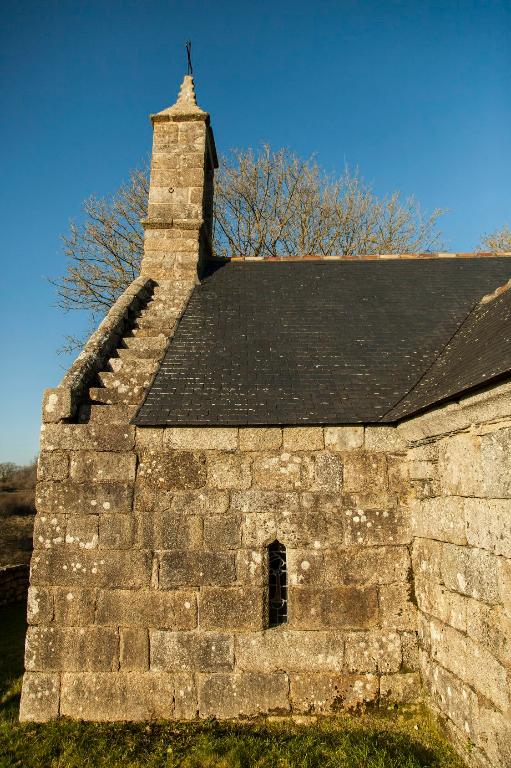 Le village du Loc’h est situé à 3km à l’ouest du Bourg de Peumerit-Quintin au milieu d’une large zone humide éponyme du lieu-dit. L’ancienne chapelle dédiée à Saint-Thomas et Saint-Cado a complétement disparu tout comme le manoir emmotté déjà ruiné au début du XVIIe siècle. Sur la route qui mène à Maël-Pestivien, on retrouve à l’est, le moulin de la commanderie totalement reconstruit, mais dont les anciens biefs sont encore perceptibles et à l’ouest, l’église du Loc’h, construite au milieu d’un large placître clos, qui enclavait autrefois le cimetière. Elle adopte un plan en croix latine au chevet plat peu saillant. La façade occidentale est percée d’un portail en plein-cintre mouluré d’un mince tore et le mur pignon est coiffé d’un clocheton à une seule chambre de cloche. La façade septentrionale est totalement aveugle, le mur pignon du bras de transept nord étant en saillie sur un terrain à fort pendage, il est soutenu à l’ouest, par un contrefort droit, et à l’est, par un contrefort oblique, les deux présentant un double ressaut en larmier. Seule, une baie rectangulaire simplement chanfreinée éclaire le bras de transept via le gouttereau est. La façade orientale ne présente que peu d’intérêt, car elle a été entièrement reconstruite à la fin du XXe siècle. La façade méridionale, faisant face à l’entrée du placître, est la plus remarquable, elle est composée, d’ouest en est, d’une mince fenêtre remontant au XIIe ou XIIIe siècle qui éclaire timidement l’entrée de la nef, puis le porche, remonté il y a quelques décennies, est voûté en berceau, l’intrados est souligné d’une mouluration en cavet et repose sur deux piles engagées circulaires aux chapiteaux feuillagés, semblant datées de la même période que la mince fenêtre. Sous le porche, le portail méridional est imposant, il est à doubles voussures à mouluration torique en accolade retombant sur de fines colonnettes engagées à bases, astragales et chapiteaux feuillagés. Le portail est surmonté d’une archivolte en accolade chanfreinée à retour. Entre le porche et le transept, il y avait un ossuaire qui a disparu depuis, une petite fenêtre en arc brisé prend place sur le gouttereau de la façade sud. Le bras de transept a été aussi entièrement reconstruit, mais sur ses rampants, ont été réemployées une série de crochets évoquant une restauration à la charnière des XVes et XVIes siècles.