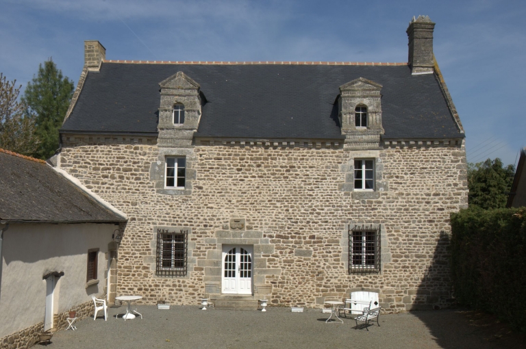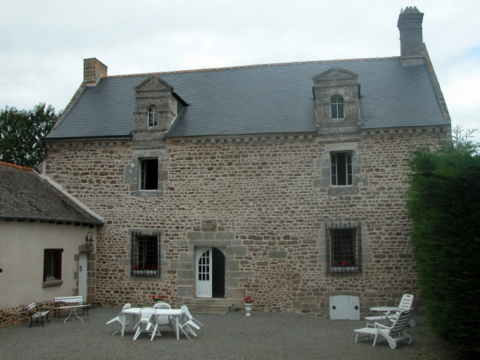 Logis à étage de plan en T renversé. Plan à deux salles, basse et haute et chambre sur cave. Il n´y a pas de cuisine dans la distribution d´origine du logis. L´escalier en vis en bois dont les marches sont taillées d´une seule pièce, est situé dans l´aile postérieure, associé à des petites pièces servant à l´origine de garde-robe. L´édifice est construit en moellons réglés et assisés de granite et de granulite, les baies en pierre de taille de granite. La corniche à modillons, les deux belles lucarnes et les souches de cheminées sont en calcaire coquillier des faluns.