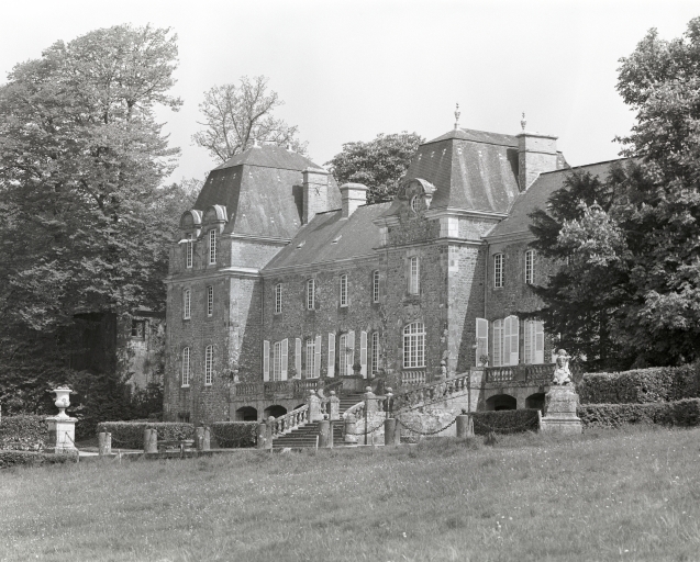 Le première pierre du château de Caradeuc est posée en 1722 par Anne-Raoul Caradeuc de la Chalotais (1667-1785), procureur au Parlement de Bretagne. Son fils Louis-René (1701-1785) procureur général, également au Parlement de Bretagne, en fait sa résidence de campagne et un domaine d'expérimentation agricole. En 1786, la terre de Caradeuc est érigée en marquisat par lettres patentes de Louis XVI. Le château commencé au début du 18e siècle est resté inachevé à la veille de la Révolution. Vendu comme bien national, il est restitué à la famille de Caradeuc au début du 19e siècle. Vers 1820, il est en partie remanié notamment par la création d´un fronton triangulaire, sur la façade sud du pavillon central qui portent les armes des Caradeuc et des Martel avec la devise « Arreste ton coeur ». Au milieu du 19e siècle, le château est séparé des communs puis s´enchaînent une série de transformations. Raoul de Caradeuc, petit-fils de Louis René entreprend en 1847 la création d´un premier parc à l´anglaise confié à l´architecte paysagiste Lhérault. En 1881, le comte Alfred de Falloux hérite du château après le décès de sa femme Marie de Caradeuc et de sa fille Loyde et fait une donation à Paul Kernier et son épouse, Gabrielle de Nétumières, descendant de la Chalotais. C´est leur fils René de Kernier qui transforme entre 1890 et 1900 le château sous la direction de l´architecte Mellet qui rehausse notamment les toitures et les pavillons, un nouveau jardin à la française est également conçu par Edouard André. Le jardin remploie actuellement des éléments de provenance diverse : bornes et chaînes des places de Rennes, vases et statues, dont une de Louis XVI prévue sous la Restauration pour la niche centrale de l´hôtel de ville de Rennes, due au sculpteur Dominique Molknecht. Les lucarnes du château ainsi que la porte dorique intégrée à la balustrade proviennent du château de la Costardais à Médréac, détruit dans les années 1930. Cette remarquable construction Renaissance portait la date de 1564. L´emploi exceptionnel de l´ordre colossal, les portes jumelées d´ordre dorique, le perron en hémicycle qui les précédait, les lucarnes à volutes et les cheminées à sarcophages portaient la marque de Philibert De l ‘Orme. Aujourd´hui le parc, ses édicules et stations diverses restituent une atmosphère nostalgique des jardins du Grand Siècle dont la partie orientale est achevée en 1950 par Jacques de Wailly.