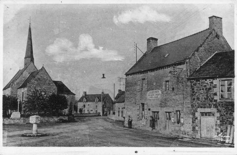 (L'église et le centre bourg], carte postale, vers 1960, Rennes : Adison. (Coll.P. Marqué).