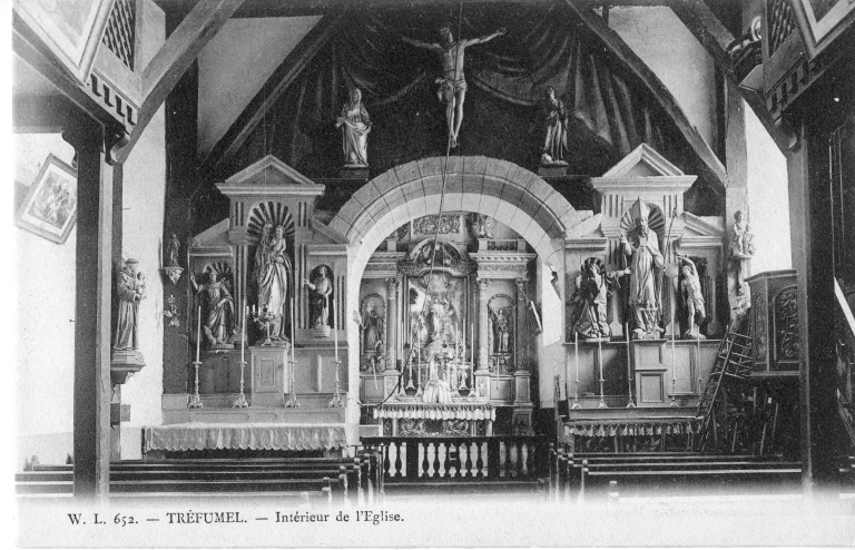 W.L.652.- TREFUMEL. - Intérieur de l'église, carte postale ancienne, (Coll.P. Marqué).