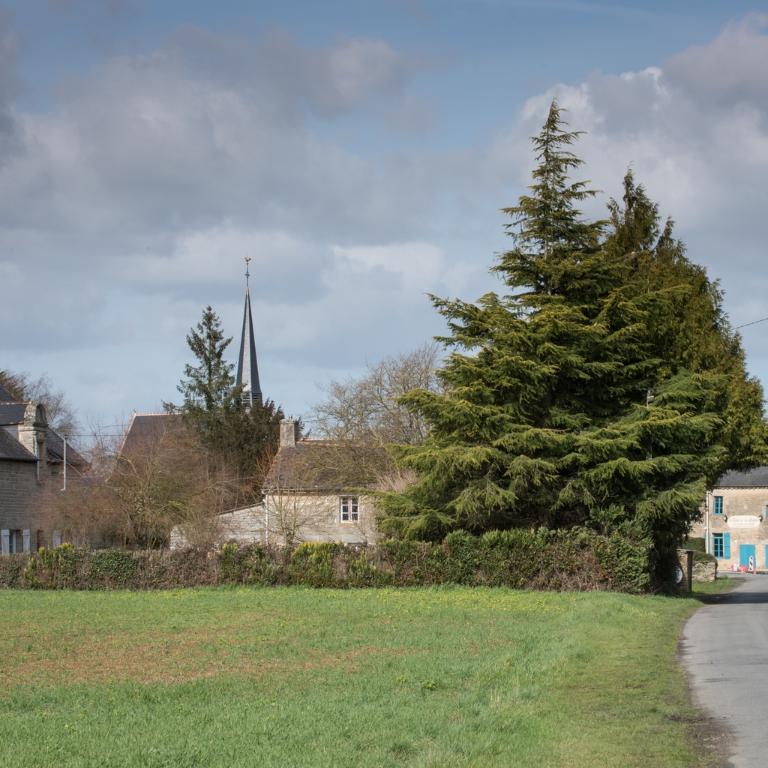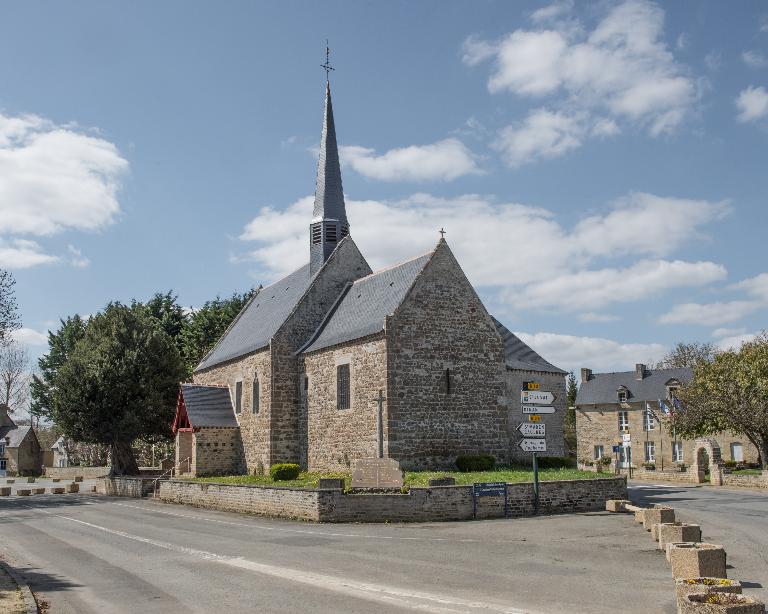 L´évolution de l´environnement de l´église Le cadastre de 1833 représente l´église entourée de son ancien enclos dont la forme en amande se terminait en pointe du côté de l´est. Cet enclos alors isolé se trouvait à la rencontre des routes de Saint-Juvat, du Quiou et de Plouasne. La route venant de Guenroc, après avoir traversé le secteur du Marais, conduisait à l´église par un tracé courbe qui conservait peut-être le souvenir d´un site ancien lié au manoir de la Rivière, situé non loin de là, au sud-ouest. L´enclos de l´église est encore bien visible sur des photographies du début du 20e siècle ; les mêmes prises de vues après la première guerre mondiale révèlent que le contournement sud avait été comblé et annexé au cimetière. L´état actuel de l´enclos, réduit de près de moitié par rapport à sa surface originelle résulte d´un aménagement radical, peu respectueux mis en oeuvre après la seconde guerre mondiale au profit de la seule circulation automobile. Cet aménagement a considérablement élargi la voirie au point d´isoler l´église et de la transformer en rond-point. Les travaux de restaurations envisagés sur l´édifice, inscrit depuis 1964 à l´Inventaire supplémentaire des monuments historiques, justifient la reconsidération de son environnement. Celle-ci vient d´être récemment décidée, en décembre 2009 par une délibération du conseil municipal.