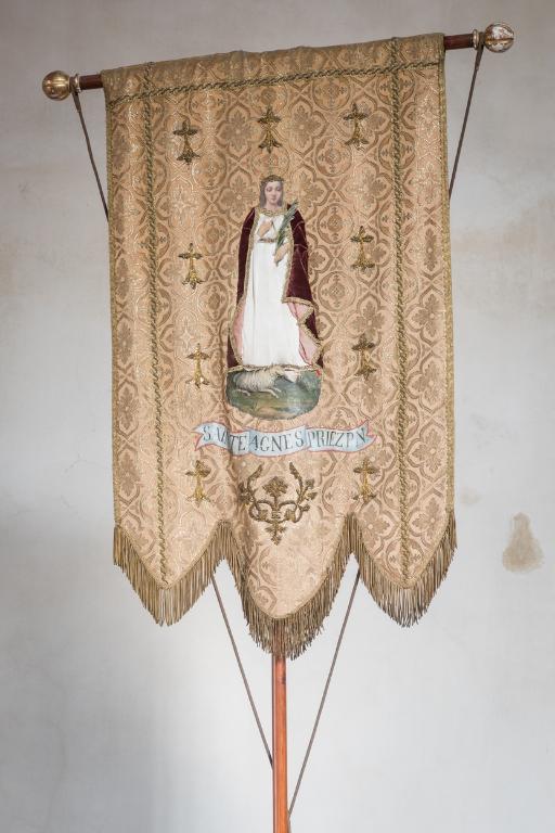 Le mobilier L´intérêt de l´église de Tréfumel tient enfin dans le maintien d´un ensemble mobilier cohérent de la deuxième moitié du 17e siècle et du début du 18e siècle. Les deux petits retables en pierre calcaire adossés contre l´arc triomphal sont vraisemblablement contemporains des travaux de la sacristie datés de1660. Les fonts baptismaux placés contre le mur nord de la nef s'ornent d'une niche en bois formant un petit retable daté de 1679 dans lequel se situe un groupe sculpté du Baptême du Christ. Le maître-autel en bois, datable du début du 18e siècle, œuvre du sculpteur Edouard Piel, d´après les dessins du frère François de la Morissais, a conservé son autel et son tableau d´origine. Il faut également signaler la bannière de la paroisse sur laquelle on peut lire la date de 1778 et la signature de l'artiste : l'Epine, de son vrai nom Jean Loup, maître brodeur à Rennes actif entre 1732 et 1778.
