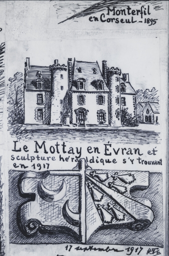 L’ensemble du Mottay a conservé un environnement préservé, avenue, parc, talus plantés d’arbres de haute tige et l’ancien vivier.La façade est du château a globalement conservé l’aspect de l’ancien logis seigneurial du 16e siècle. Ce dernier devait comporter trois pièces par niveau, celles des extrémités, plus petites, encadrant une grande pièce centrale. Au milieu du rez-de-chaussée, surélevé de ce côté du fait de la légère pente du terrain, se trouvait la grande salle du manoir, éclairée par une haute fenêtre à linteau en accolade encadré de pinacles. Cette fenêtre qui a conservé à l’instar des autres baies d’origine ses attaches pour des grilles saillantes, a été transformée en porte vers 1870. De part et d’autre deux autres fenêtres plus récentes ont été percées au 19e siècle lors de la restructuration du logis.Le décor gothique flamboyant des fenêtres et en particulier celui des pinacles latéraux est très proche stylistiquement de celui des églises de Saint-Malo et Saint-Sauveur de Dinan dont les choeurs sont reconstruits à partir de la fin du 15e siècle et réalisés dans les premières décennies du 16e siècle.A la base du pignon sud deux anciens soupiraux montrent que la pièce qui se trouvait derrière était probablement l’ancien cellier du logis. Dans le triangle du pignon nord, une ancienne porte haute, qui ouvrait peut-être sur une coursière de bois, laisse penser qu’il existait un étage de comble éclairé par de hautes lucarnes à pignons aigus comme il est fréquent dan les manoirs de cette époque.