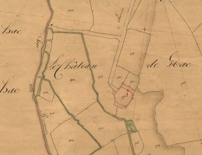 La terre de Hac passe au début du 15e siècle des mains de la famille du même nom dans celle des Hingant par le mariage de Charles Hingant avec l´héritière de la seigneurie. Le grand logis actuel construit dans les années 1440-1448 pour Jean Hingant, chambellan et familier du duc de Bretagne, a peut-être remployé dans sa partie est les fondations d´une ancienne « maison-tour » du 14e siècle. D´importants travaux au début du 17e siècle ont concerné le changement de la plupart des poutres des étages. Après être passé par héritage dans la maison de Rieux, le château fut vendu en 1686 à la famille de Lopriac, date à laquelle la charpente du toit principal fut presque entièrement refaite et les fenêtres du premier étage agrandies. Le château est vendu en 1770 à Yves Reslou de la Tisonnais, avocat à la cour, conseiller du roi et procureur de la sénéchaussée de Dinan, également acquéreur du château du Lattay en Guenroc. L´édifice semble avoir été transformé en métairie à cette date. Des photographies de la fin du 19e siècle montrent un logis comme fossilisé dont les étages sont transformés en greniers et les grandes fenêtres obturées ou réduites . L´édifice, inscrit à l´Inventaire supplémentaire des monuments historiques en 1926, est sauvé de la ruine par une importante restauration entreprise entre 1927 et 1936 par la famille Paillard. Des jardins de style médiéval sont créés au nord du logis entre 1980 et 1990.