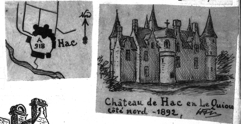 La distribution du logis de Hac est caractéristique des résidences seigneuriales d’un rang supérieur qui adoptent en Bretagne au cours du 15e siècle le modèle royal français transmis par la cour des ducs. Toutes les pièces comportent des cheminées qui quoique simples témoignent d’une grande qualité d’exécution.Les éléments de modénature correspondent parfaitement avec la date livrée par la campagne de dendrochronologie qui situe la construction de l’édifice vers le milieu du 15e siècle ; sur la porte principale, les bases « en flacons », ici traitées avec une certaine raideur ancrées sans un glacis, les colonnes et les chapiteaux des cheminées ; les portes en accolades de l’escalier font probablement partie des premiers emplois d’une forme qui connaîtra un large succès en Bretagne pour durer jusque vers le milieu du siècle suivant., L’emplacement de la chapelle domestique diffère des dispositions du grand logis ducal de Suscinio, du château de la Roche-Jagu ou encore de Tonquédec où dans les deux cas, la chapelle ouvre sur la grande salle du premier étage. Au Hac, la situation de la chapelle domestique au dernier étage de la demeure est révélatrice du prestige attaché à l’étage de comble, auquel la charpente en fausse voûte conférait une solennité toute seigneuriale.