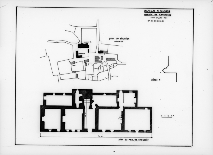 Manoir construit vers 1560 pour Hervé de Kerneguez et Marie du Perier ; partiellement reconstruit en 1744 ; deuxième logement construit en 1590, portant l'inscription : L'AN 1590 CORDE MA..