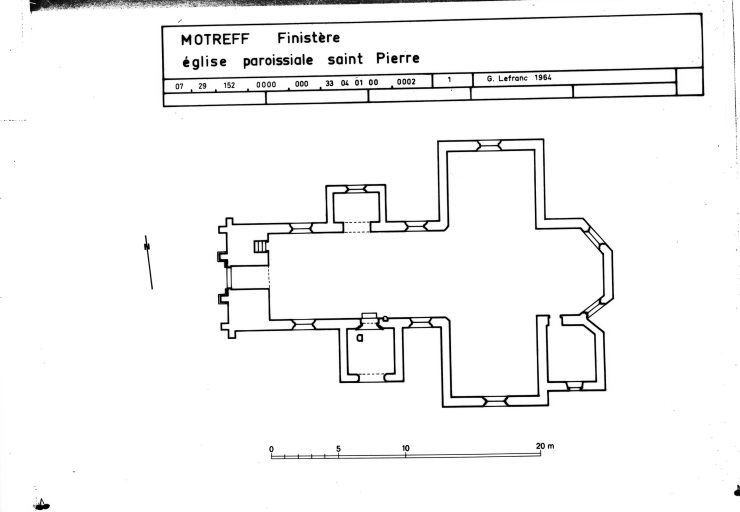 Vestiges d'une construction du 16e siècle : enfeus du transept, porte intérieure du porche sud et partie du pignon ouest ; reconstruction de 1763 à 1768 par Poulizac et Yvon Cloarec ; porche sud porte la date 1767 ; chapelle des fonts en 1834.