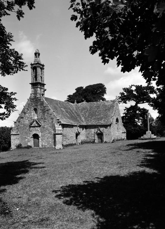 Chapelle construite de 1592 à 1607 ; inscriptions : S GOVRIE fa 1592 (mur sud nef) ; H DAVOL FA 1607 ; H QUERR FA 1593 (transept sud) ; reconstruction de la façade ouest et du clocher en 1712 ; inscription : St RO 1712 ; sacristie en 1712 ; inscription : N et D M P FVRIR R M QVEMENEVR 1712 ; fontainé en 1667 ; inscription : M Y CVER RECTEVR PRIGANT FABRIQUE 1667 ; calvaire en 1637 ; inscription : M P H MARZIN R Y QVEMENER FA 1637.