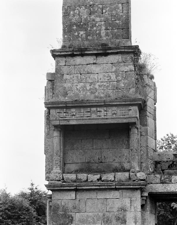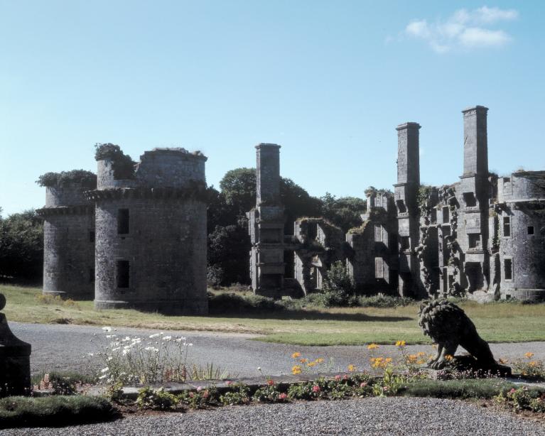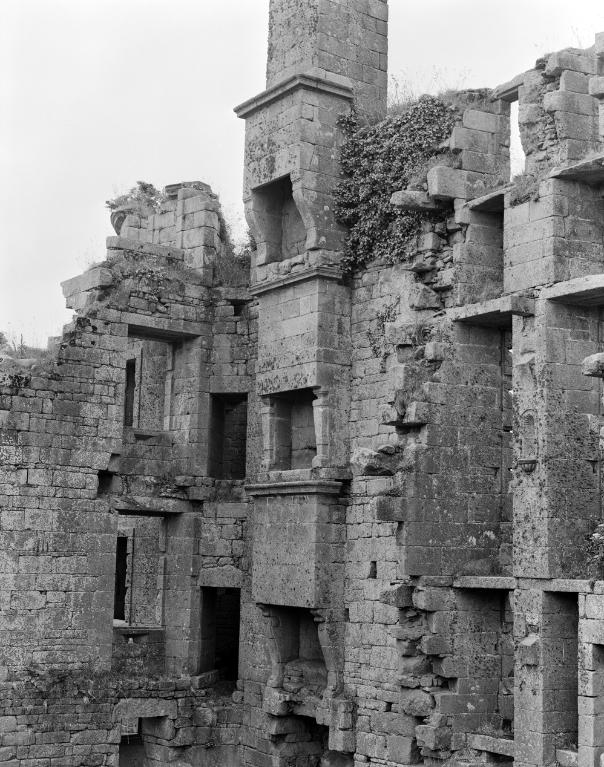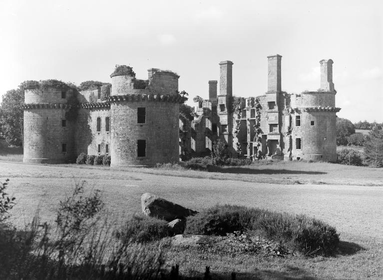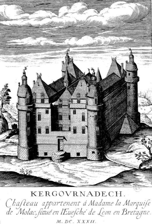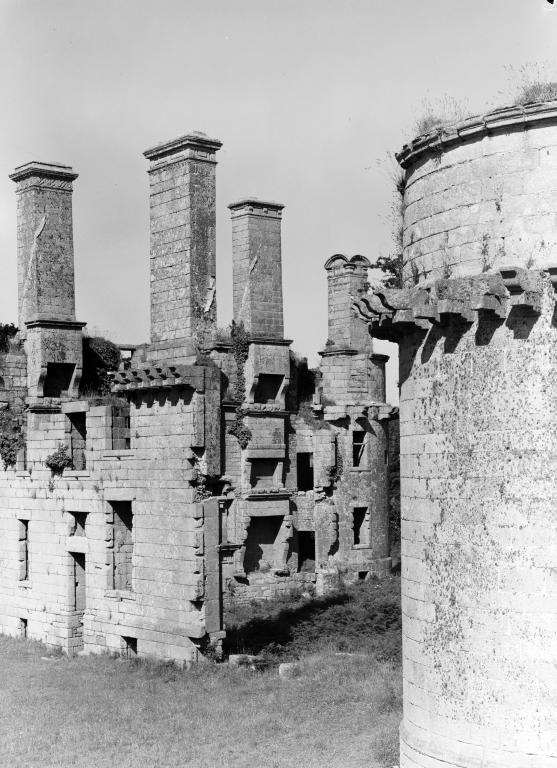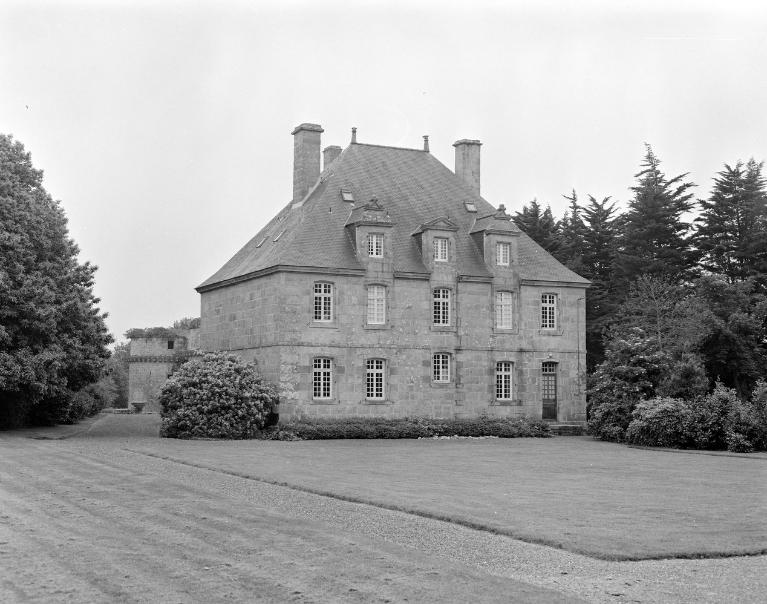 Le cadastre de 1829 montre le château dans son environnement de l'époque (nulle trace de l'enceinte défensive) : au sud-ouest une chaussée faisant digue, deux étangs et un moulin à eau au nord-ouest, des avenues ou grandes allées plantées (avec pour les fermes proches, les toponymes : La Porte et Pen ar Valy, le bout de l’allée), des pâtures, futaies, courtils et terres labourables, une métairie, une chapelle, des dépendances comme un four à pain, une buanderie, un routoir et un colombier au nord-est (conservé).
