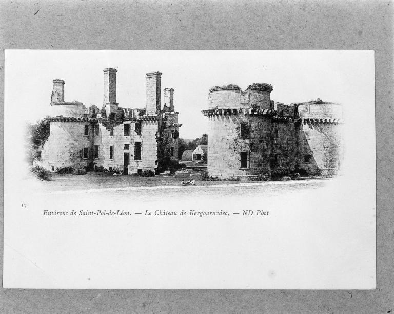 Le château de Kergournadec’h est situé à Cléder, à 65 mètres au-dessus du niveau de la mer, dans un petit vallon où coule le Kerallé qui se jette dans l’anse du Kernic située à 5 km vers le nord-nord-ouest.