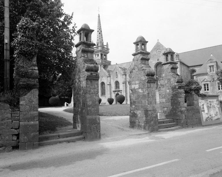 Clocher construit en 1655, 1669 par l'architecte Prigent Kermarrec ; remanié en 1762 ; entrée de l'enclos construite en 1771 ; nef, transept et choeur 3e quart 18e siècle ; bas côtés agrandis en 1871 par l'architecte Rivoalan.