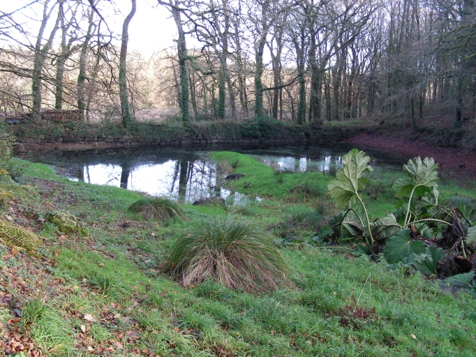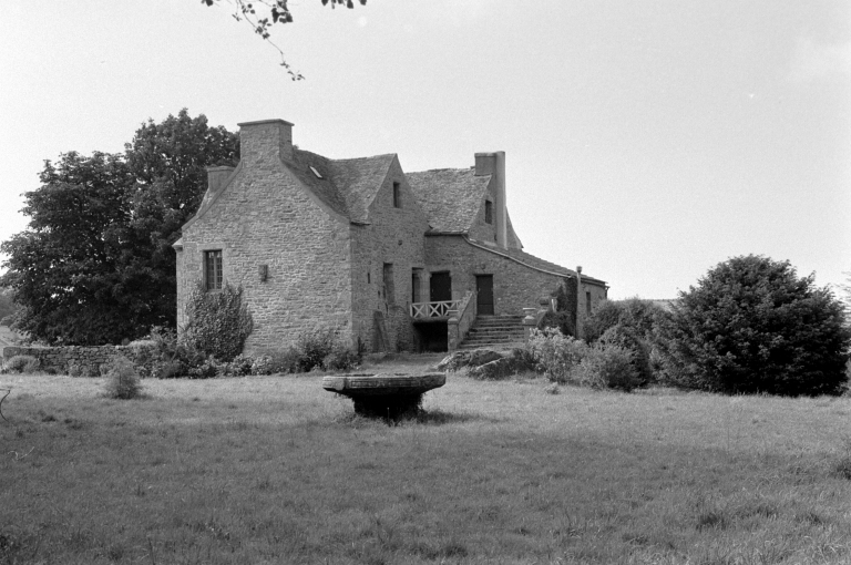 MANOIR : édifice à un étage carré. Elévation principale orientée au nord avec porte d´accès en arc brisé surmonté d´une archivolte. Plan allongé avec aile en retour d´équerre abritant la cuisine avec cheminée monumentale et grand évier au rez-de-chaussée et chambre à l´étage. Partie ouest à deux salles superposées à double orientation et cheminées monumentales. Gros oeuvre en moellon de granite, à l´exception des encadrements des baies, des cheminées et de l´escalier de distribution extérieur en pierre de taille de granite. ANCIENNE METAIRIE : alignement à un étage. Etables et écuries surmontées de greniers à l´est, logis et logement à l´ouest. Gros oeuvre en moellon équarris de granite, partiellement en pierre de taille de granite alternant avec des bandes de schiste, baies en granite. VASQUE : en granite, le bassin circulaire à bordure moulurée et timbrée de quatre blasons muets repose sur un support cylindrique massif, également en granite.