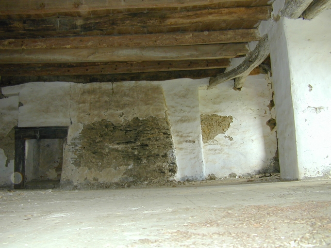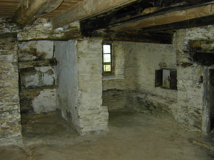 L'élévation principale était, à l'origine, orientée à l'ouest, avec avancée abritant l'escalier de distribution extérieur et l'espace à l'origine destiné à recevoir table et bancs. Baies est (extension) à linteaux en bois. Encadrement des portes anciennes en pierres de taille de schiste. Ancien commun en alignement couvert de tuiles mécaniques.