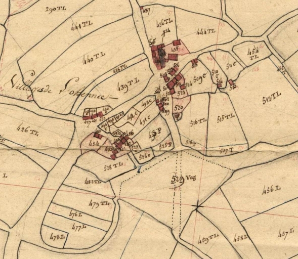 Le bâtiment daté 1779 conserve une avancée en façade postérieure enfermant un escalier droit en grandes dalles de schiste.