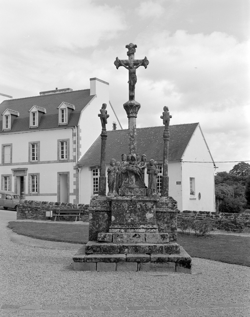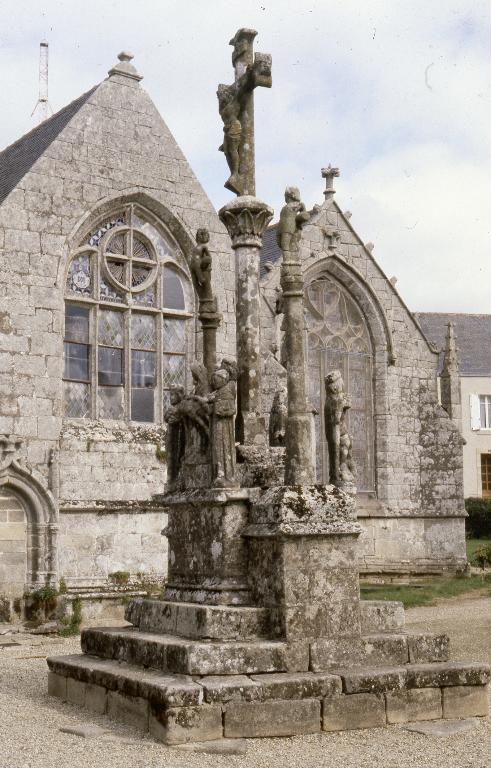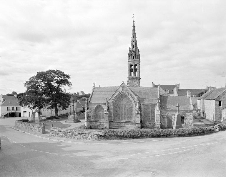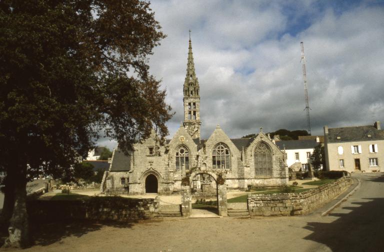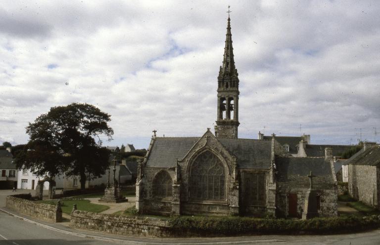 Eglise construite début 16e siècle ; pignons des chapelles sud reconstruits en 1706 ; clocher reconstruit 1892 par Jean-Marie Abgrall ; inscriptions : 1557 RESPICE FINEM ; V ET D MI I L' HOSTIS RECTEUR V M QUEMENER C Y MRE JUZEAU P G LIZEN F LAN 1706 ; calvaire construit au 15e siècle ; restauré au 19e siècle par Jean-Marie Abgrall.