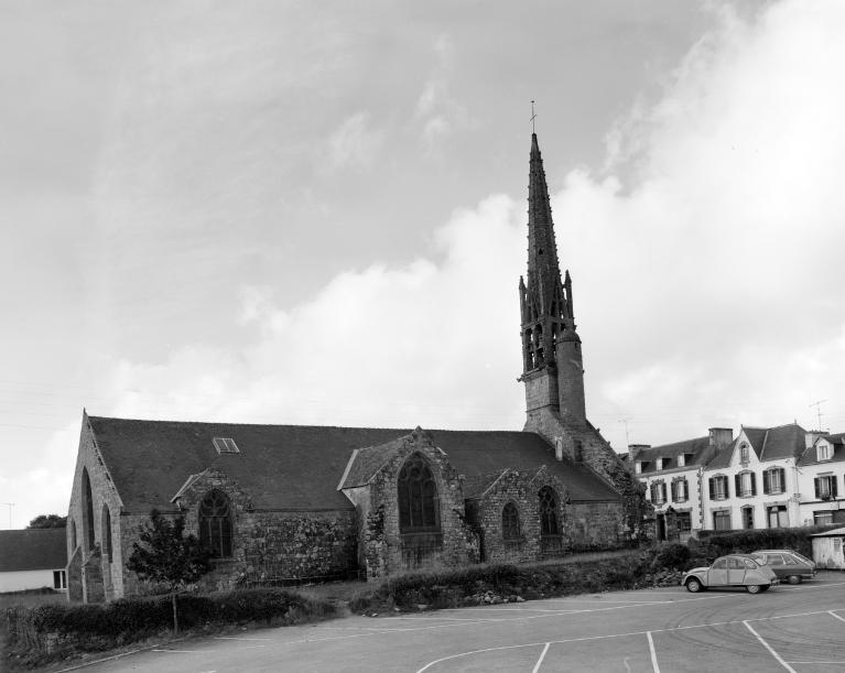 Nef romane 12e siècle, transformée ; choeur atelier de pont croix 14e siècle ; façade ouest et clocher 1582, 1583, 1585, 1587, dates portées ; porche sud 1854, date portée ; inscriptions nombreuses sur façade ouest : M Y AROUR RECTOR.... Fabrique PHLRVSQVOET ASVP M COR G BRETON F 1583 H I HENRI R l 1582 LAN 1585 LAMOUR LAN 1587 1 AN BERREAR M MARZIN RTR 1854 M L GOUZIL MRE LE FRIAND TR ; croix monumentale 15e siècle ; croix monumentale 1865.