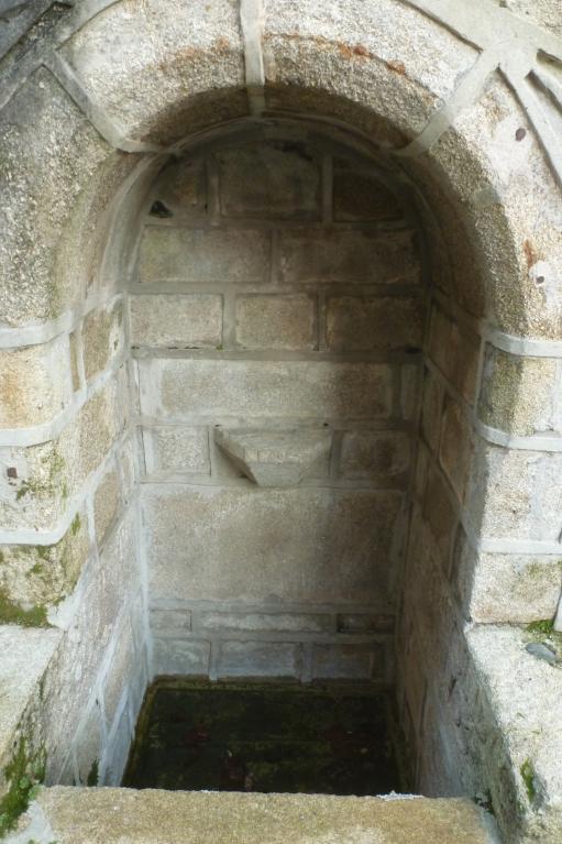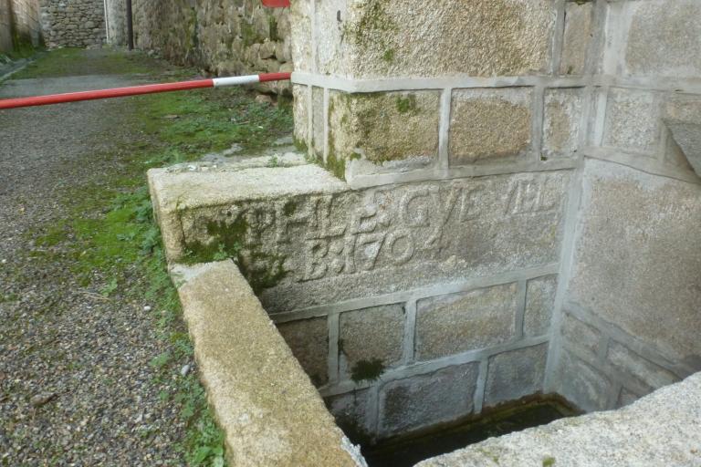 Datée par inscription de 1704 (date portée deux fois sur les murs intérieurs et une fois sur la pierre saillante du mur pignon), la fontaine se trouve aujourd’hui près du chevet de l’église Saint-Raymond. S’agit-il du même édicule déplacé ici pierre par pierre ?