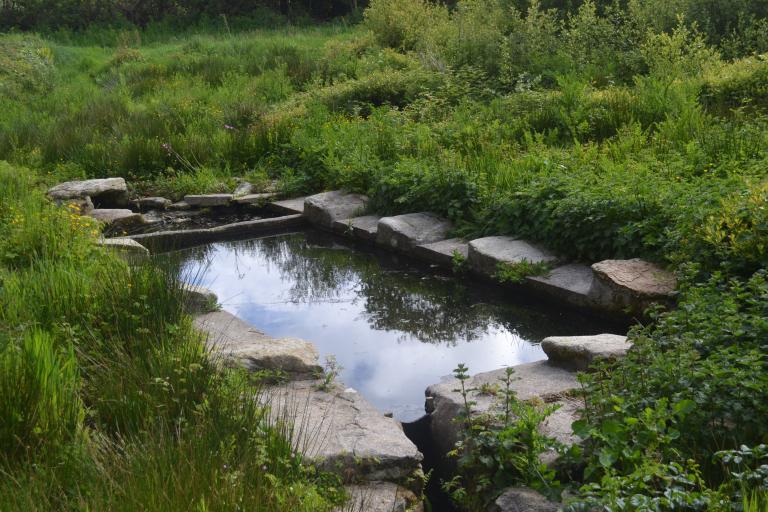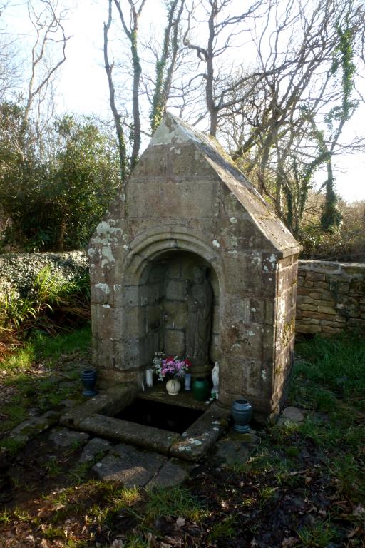 Six fontaines de dévotion ont été repérées : Deux d’entre elles dépendent de l’église paroissiale (Saint-Budoc et Notre-Dame de la Clarté), deux autres d’une chapelle existante (San-Spé et Saint-Conogan) et les deux dernières d’une chapelle disparue (Lochrist et Saint-Tudy). Il s’agit d’édicules soignés en pierre de taille, à bassin rectangulaire, toit à deux pans et niche à saint.