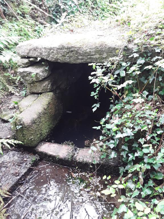 Certains lavoirs repérés sur la commune appartenaient à une famille en particulier. Ils peuvent se trouver dans la cour de la ferme, accolée au puits (Kergleguer, Kernevez), sur une parcelle privée proche de l’habitation (Kervizinic, Roz Normant, Kerloc’h…) ou alors dans des endroits plus atypiques comme ce lavoir repéré près de Keriolet aménagé dans une aspérité de la falaise.