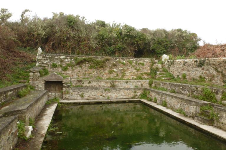 Notons que cette dernière, ainsi que la « vieille fontaine » de Penneac’h, au vu de leur proximité avec la côte et une crique abritée, ont depuis longtemps servi à l’approvisionnement en eau douce des marins se préparant à affronter le raz de Sein. (L’abri de Feunteun Aod est signalé dès le Moyen-Age sur les portulans.)