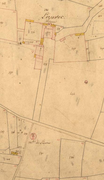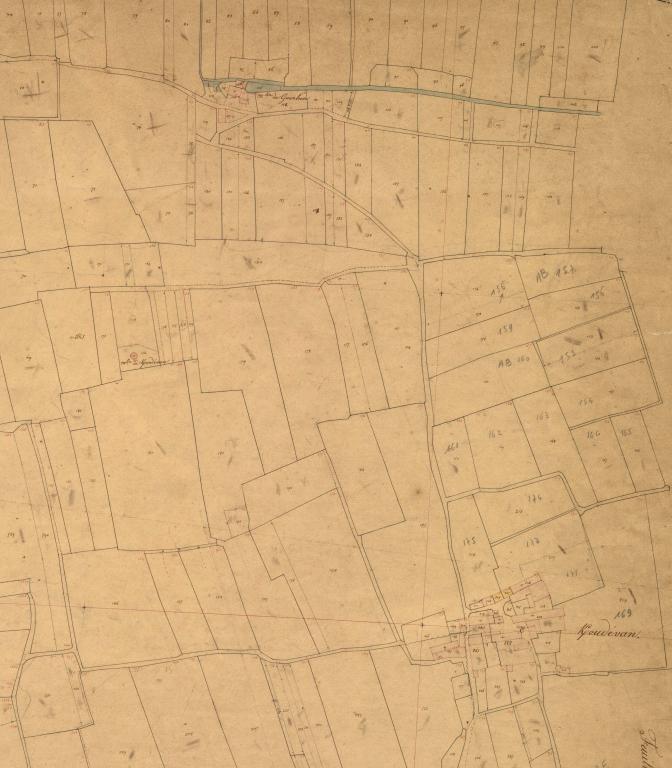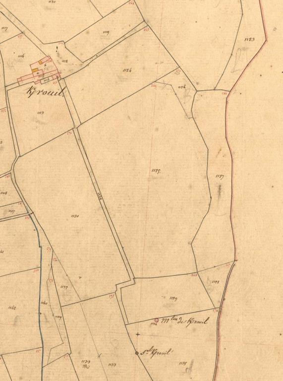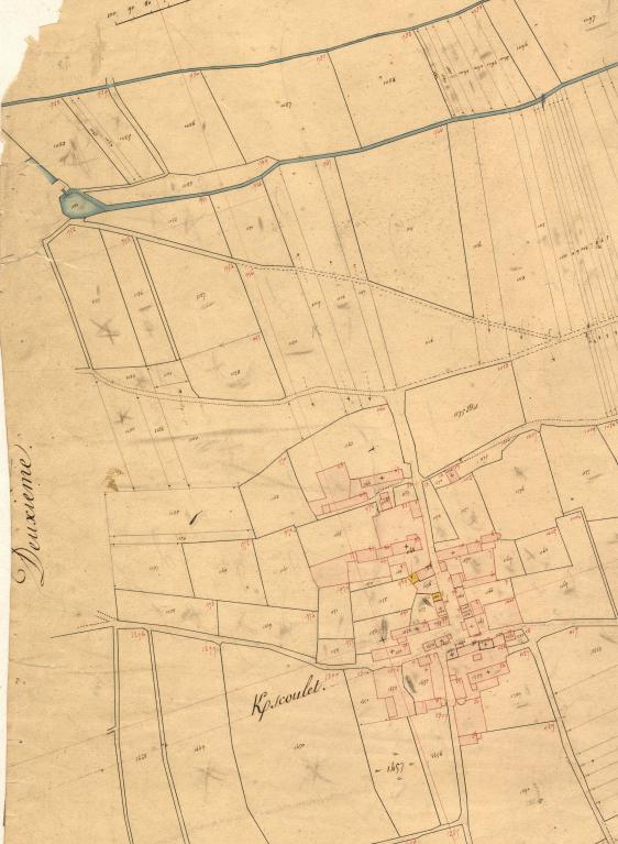 Le même bief alimentait le bassin de chacun des deux moulins. Celui-ci débutait à l’est du « pont Cadiou » où une déviation a été créée sur le kouar coz. Il longeait ensuite le ruisseau en passant successivement par les bassins de Kerscoulet puis de Kerguerhen. Une fois passé ce dernier, l’eau était déviée vers le nord pour rejoindre le cours du ruisseau.