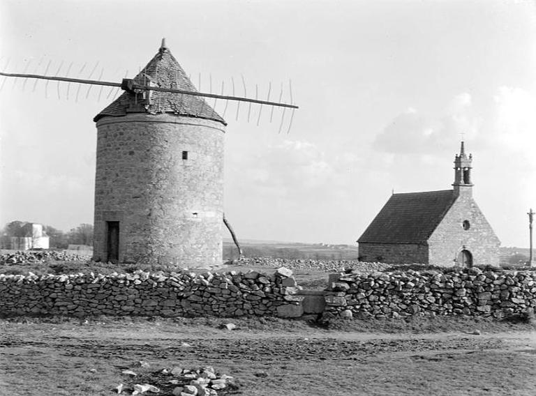 Des sept moulins à vent signalés sur le cadastre de 1837, seuls trois sont toujours visibles aujourd’hui : les moulins de Kerhas (date portée : 1828), Kerforn et Kerscoulet (date portée : 1820). Les moulins disparus, dont il ne reste que des photographies ou quelques pierres réemployées dans des fermes alentour, se trouvaient au nord-ouest de Kerodeven, au sud de Lezurec, aux abords de la chapelle Saint-Théodore et au sud de Kerouil.