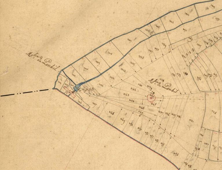 Le moulin à eau de Penbil, également isolé, se trouve sur un ruisseau qui alimente plusieurs moulins de Goulien et de Primelin. Il se dresse précisément entre Moulin Brotel (en amont) et le moulin de Kergonvan (en aval). Le moulin à eau de Pont Prenn se trouvait quant à lui au nord de l’anse de Sugensou et était alimenté par un affluent du Goyen.