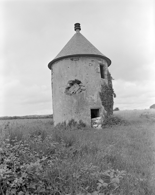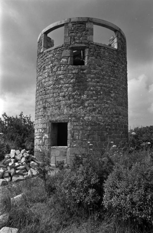 Les deux tours observées sur la commune et les photographies anciennes d’autres moulins montrent un appareillage en moellons de granite (soigneusement équarris pour le moulin de Lervily). Deux portes y sont aménagées en fonction des vents dominants: l’une au sud-ouest et l’autre au nord-ouest (approximativement) pour qu’une entrée soit accessible quel que soit le sens du vent.