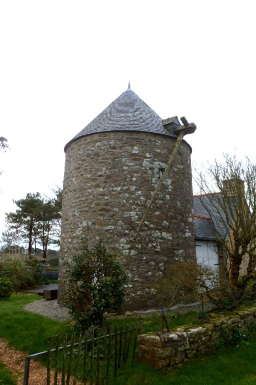 Les deux tours observées sur la commune et une photographie ancienne du moulin de Kerlavarec montrent un appareillage en moellons de granite. Deux portes y sont aménagées en fonction des vents dominants: l’une au sud-ouest et l’autre au nord-ouest (approximativement) pour qu’une entrée soit accessible quel que soit le sens du vent.