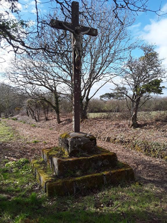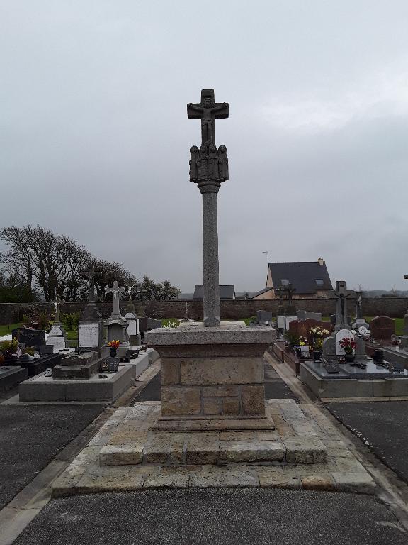 La croix de l’église paroissiale se trouve dans l’enclos, au Nord de l’église. Elle date du 2e quart du 19e siècle et est en granite. Son socle cubique à chanfrein est posé sur trois marches. Sur son fût rond se trouve un panneau sur lequel on peut lire « YES. GEN. MIE. ANE. GGE 1830. Sur la croix de section ronde, se trouvent un christ en croix et une vierge à l’enfant.