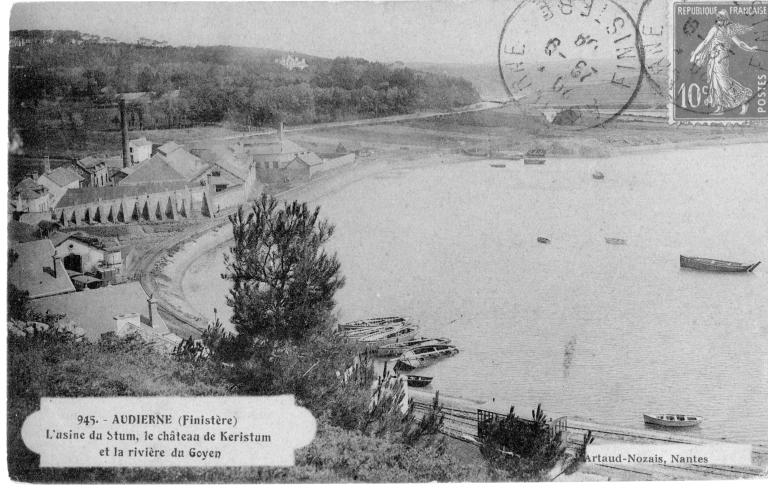 C’est à cette même époque (1879) que fut fondée par les frères De Lecluse l’usine du Stum, au fond de l’anse du même nom au nord du pont sur le Goyen. Cette usine de fabrication de produit chimiques est spécialisée dans l’extraction d’iode, de soude et d’engrais provenant des cendres d’algues récoltées et brulées sur le littoral par les goémoniers.