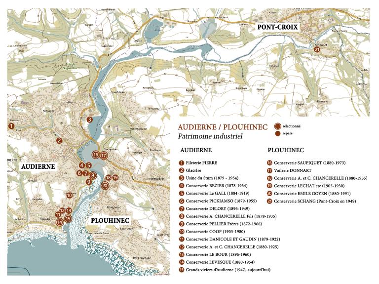 La première conserverie de sardines (ou « friture ») est implantée au-dessus de la grève des Capucins en 1872 par les frères PELLIER originaires du Mans. Quelques années plus tard, d´autres industriels leur emboîtent le pas. Ainsi, huit établissements voient le jour sur la commune entre 1878 et 1880 principalement sur les actuels quai Jacques de Thézac et rues du môle et Kerguelen, non loin du Raoulic.