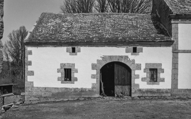 Ce dernier possède une porte charretière rectangulaire dont l’ouverture est en plein cintre pour les plus anciennes comme à Bremel, Kerlaouen ou Théolen, puis en arc surbaissé pour finir en arc segmentaire (Toscer, Douard, 1979). On observe également quelques linteaux droits en bois.