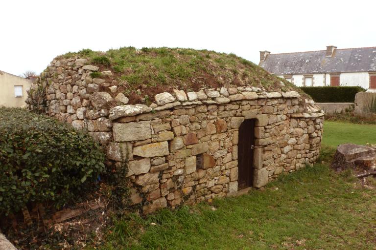 Cependant, la grande majorité des fours à pains rencontrés à Plogoff (Penneac’h, Lescoff, Kerherneau ou encore Pendreff) est d’un type différent : située le plus souvent à l’écart des bâtiments de la ferme, il s’agit d’une construction à toit sans charpente qui consiste en de gros blocs de granite reposant directement sur la maçonnerie de ses murs. Ces dalles sont recouvertes de mottes de terre, ce qui donne au toit du four une forme bombée. D’après plusieurs témoignages oraux, il est entendu que ces fours étaient communs à toutes les familles du hameau.