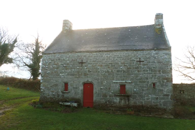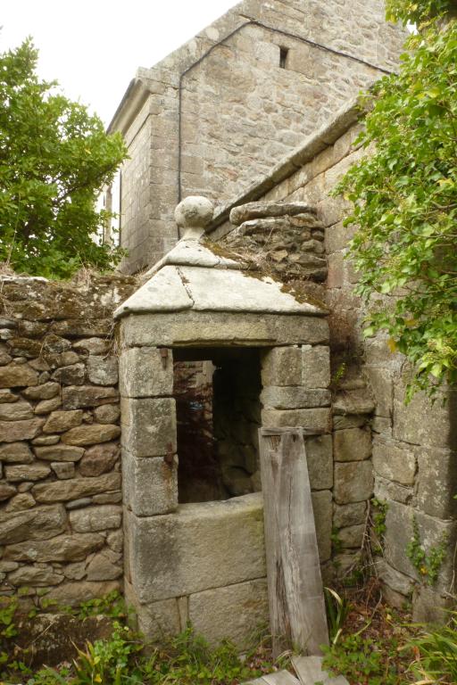 Toujours dans la représentation religieuse, on peut également remarquer la présence d’une niche à saint au-dessus de la porte d’entrée de plusieurs fermes de la commune (Kerhas Bras, Loval, Kervrant, Kerloa…). Très soignées, ces dernières proposent un motif récurent qui comprend la niche en plein cintre avec culot saillant flanquée de deux rameaux sortant d’un vase stylisé. Le puits octogonal de Kerhas Bras présente lui aussi sur l’une de ses arrêtes une niche à saint sous laquelle se trouve un angelot aux ailes déployées. (Motif répété au-dessus de la porte d’entrée accompagné d’un soleil et d’une lune).