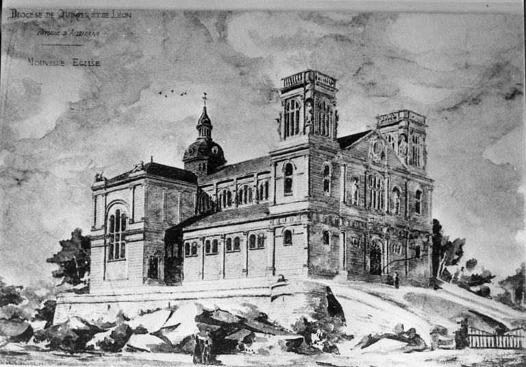 Réalisée d’après les plans de l’architecte Charles Chaussepied, également auteur, sur le territoire, du monument aux morts d’Esquibien en 1921, les travaux se firent en plusieurs étapes :
