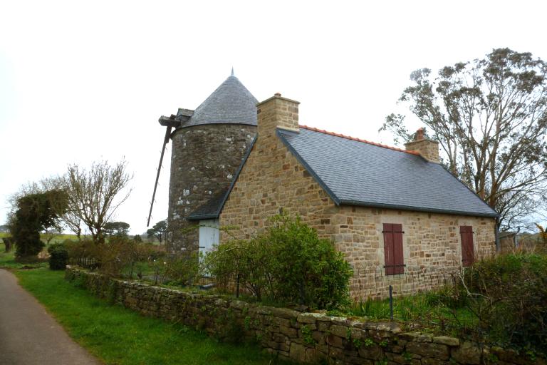 Cet ancien moulin à vent est l’un des deux seuls ouvrages de ce type à être encore en élévation sur le territoire de la commune en 2020. Daté par inscription de la fin du 18e siècle (1797), il est signalé sur le cadastre de 1837 comme appartenant à la famille PERROT habitant au moulin (à eau) de Kerlevesq situé à un kilomètre au sud dont le nom orne le linteau de la porte sud.