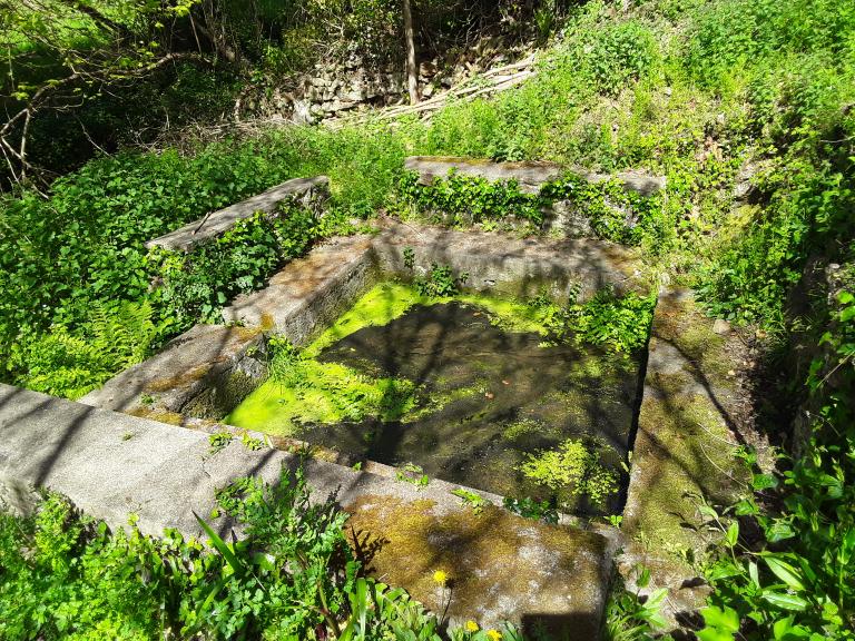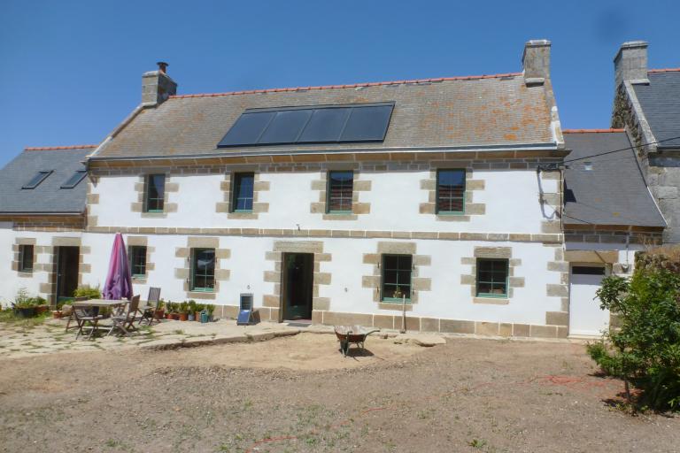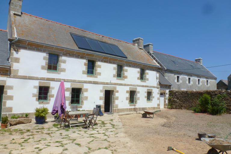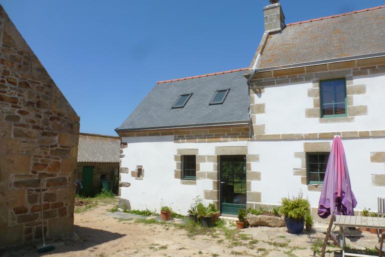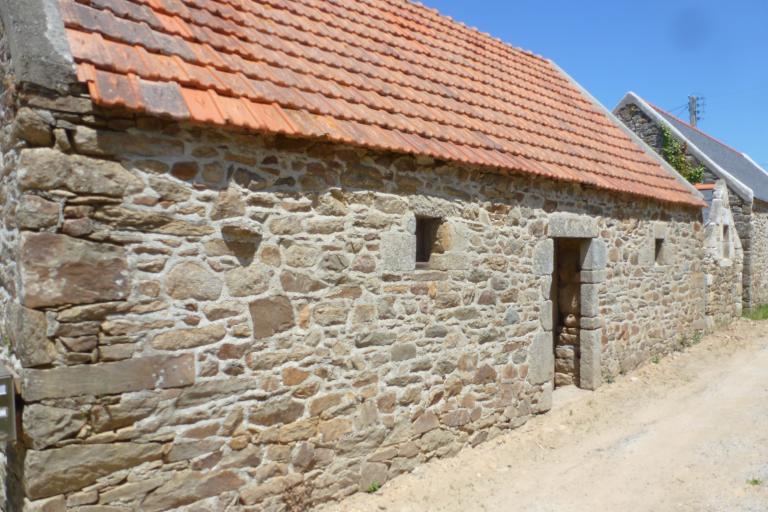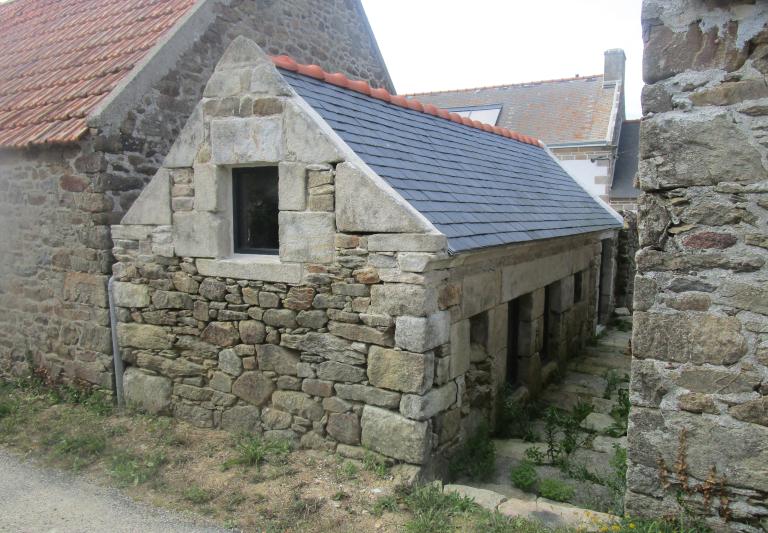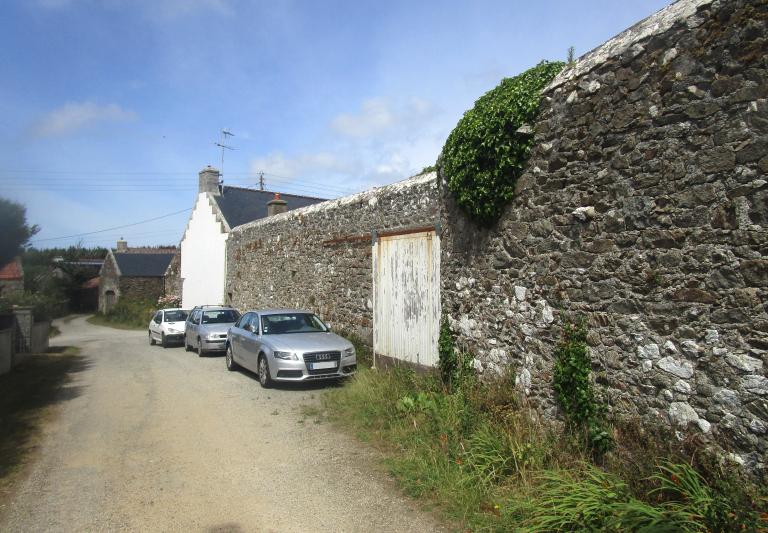 À la sortie ouest du village, le terrain s’abaisse brusquement vers le lavoir commun puis vers la mer et le port de Pors Théolen.