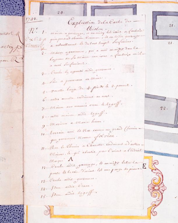 Le village de Théolen se trouve au Nord de la commune, sur le rebord du plateau. Les bâtiments sont desservis au sud par une ruelle axée est-ouest d’où part une voie secondaire très étroite desservant la partie nord du village. Le long de ce chemin se trouvent encore quelques chasse-roues en galets qui empêchaient les essieux des charrettes de venir cogner les angles des bâtiments.