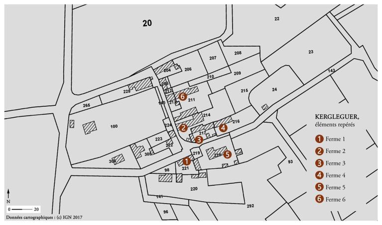 Les fermes présentes sur le cadastre de 1837 sont toujours visibles aujourd’hui bien que les dates portées soient postérieures : 1839 pour la plus ancienne, 1863, 1857, 1881 et 1889 pour la plus récente. Ces dates renvoient au renouvellement de l’habitat rural qui eut lieu dans tout le Cap-Sizun au milieu du 19e siècle.
