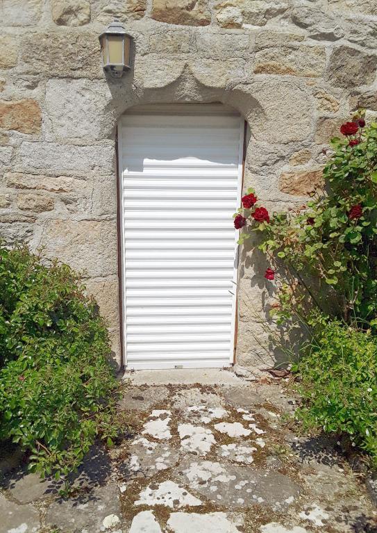Sa façade antérieure est en moellons non crépi et sa porte d’entrée est en anse de panier, à piédroits chanfreinés et arc en accolade.